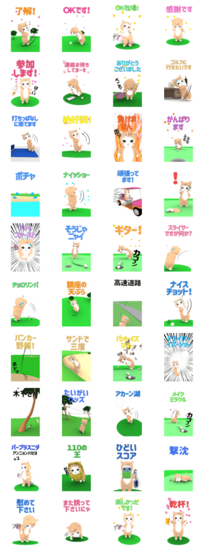 ねこのちょろです。画面いっぱいに表示される猫がゴルフに挑戦します。 ※このスタンプはトークルームで大きく表示されるBIGスタンプです。G-flash より発売