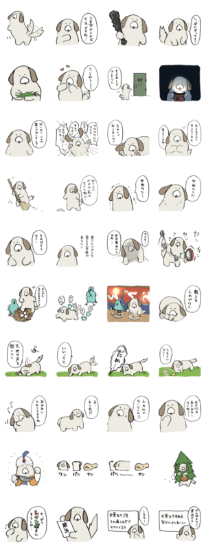 雑種のweb野良犬・ふわんわんのイヌ用コミュニケーションスタンプです。これどこで使うのかな?と思うかもしれませんが大丈夫!ワンちゃんです!犬はTPOを選びません!あらたアトリ より発売