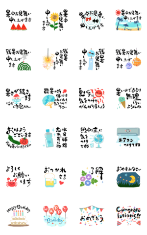 動く♡夏の挨拶&暑中見舞い♡ゆる筆文字 スタンプ画像一覧