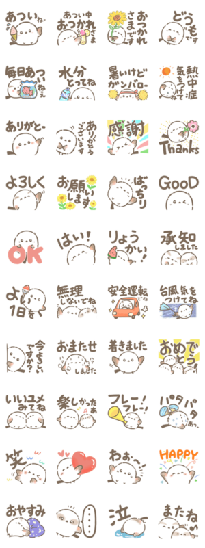 夏のデカ文字!エナガさんとシマエナガさんの夏にも使いやすい日常会話スタンプです。/白いことり/便利/毎日使える/ほんわか/文字大きい/デカ文字/しまえなが/ひな