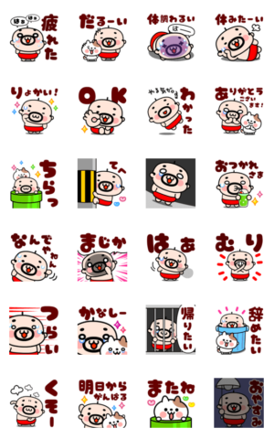 【飛び出す!】でか文字疲れたおやじ君と猫 スタンプ画像一覧