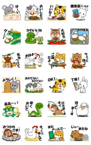 いつでも使える挨拶や言葉を詰め込んだ、十二支の動物たちの飛び出すスタンプです。ヒサケイプリン より発売