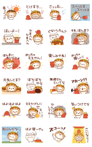 友達や家族、恋人に♪たこ焼きをかぶった可愛いネコさんによるコテコテの関西弁スタンプ第二弾です!毎日のちょっとしたやり取りなど日常会話にとっても便利です。(白猫)