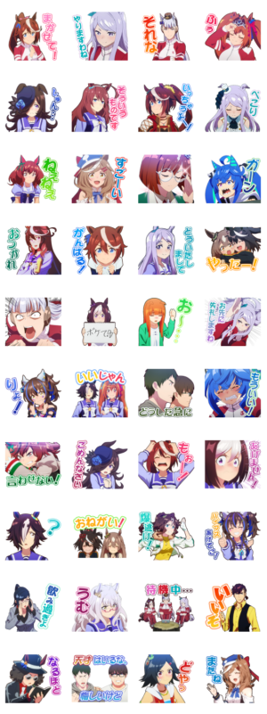 アニメのウマ娘に激ハマりしてたからこのスタンプはもちろん使います。ゲームの方は課金が怖いから我慢してます。