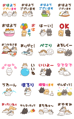 男女問わず使いやすい、ゆるい雰囲気の子猫のスタンプです。あると便利な挨拶やお返事をたくさん集めました♪