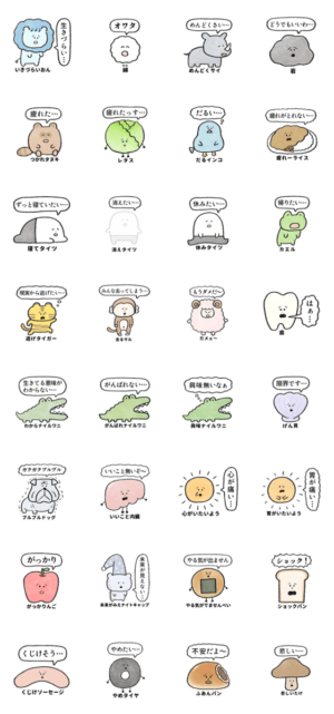 ネガティブなダジャレのスタンプです。ワタシはタワシ より発売