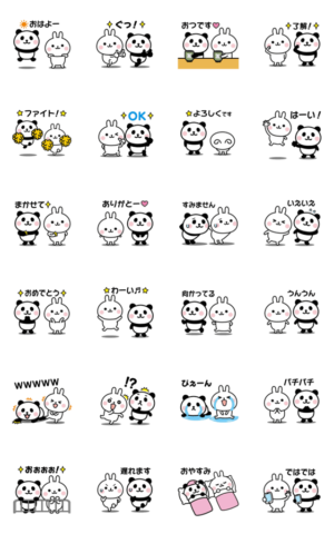 可愛いうさぎさんとぱんださんの毎日使えるシンプルな言葉を集めた動くスタンプです♪パン より発売
