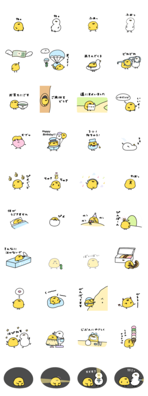 ヒヨコとアヒルのほのぼのなスタンプです。bocunoe より発売