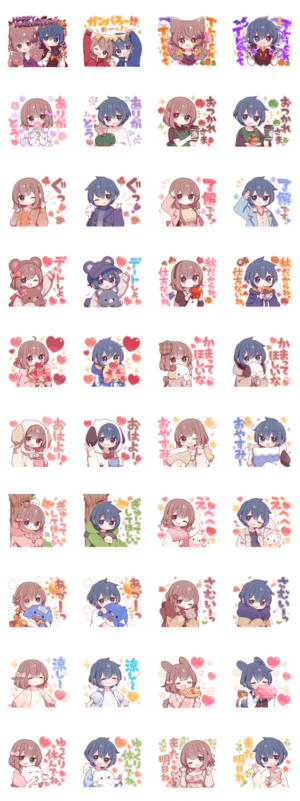 大好きな人、大切な人といっしょに毎日使える秋スタンプです。リアクションや伝えたい言葉が沢山入っています。友達や恋人、家族との会話、ハロウィンにも是非♪