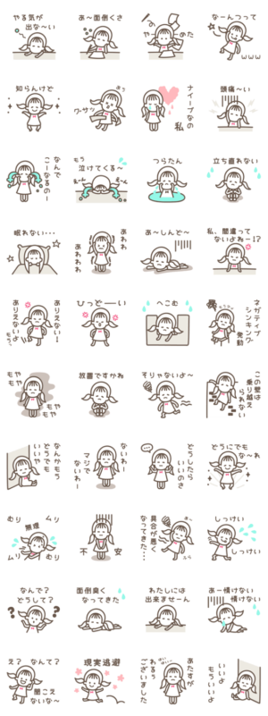 ネガティブな日もある♡シンプルガール スタンプ画像一覧