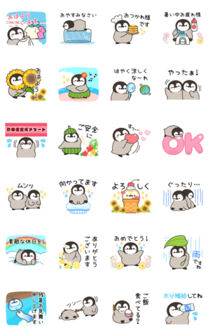 飛び出す♪ほのぼの子ペンギン7 (夏) スタンプ画像一覧
