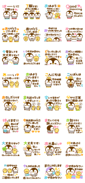感謝の気持ち♡思いやりの気持ちなど♪いろいろな気持ちが伝わる長文のぺんぺんスタンプです。ペンギンぴよたぬき♡ より発売