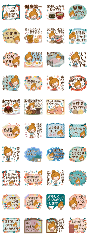 落ち着いた癒しカラーが大人かわいい♪日常に使える、相手を思いやる言葉がいっぱい入った便利スタンプです★友達や家族はもちろん、ママ友、お仕事などにもおすすめです♡