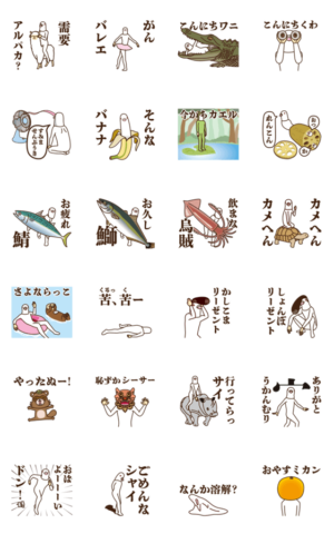 動く白いハトのスタンプ第5弾。今回はだじゃれ特集です。ネコビタン より発売