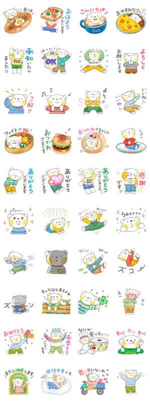 仲良しともだち「はるちゃんとふうくん」でおなじみ、くまの男の子「ふうくん」のスタンプが登場♪敬語が多めで男性も使いやすい!一年を通して使える日常言葉です。