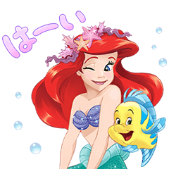 「リトル・マーメイド」の敬語多めなアニメーションスタンプ!元気で可愛いアリエルと、水中みたいな泡のあしらいが楽しいスタンプです♪