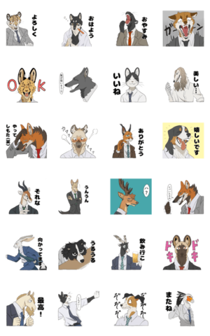 サラリーマンの獣人のスタンプです。使いやすいのでケモナーさんにもそうでない方にもオススメです。ロッティさん! より発売