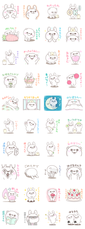 うさぎ&くま100% あいさつ 関西弁 スタンプ画像一覧