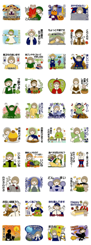 秋の雰囲気に染められた、いろんな秋を楽しめる日常スタンプです。