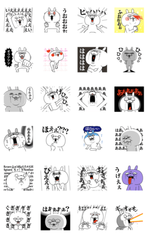 感情が高ぶりすぎてすごい顔になってしまったウサギの言葉にならない叫びだけのポップアップスタンプ☆喜び怒りショックなど様々な叫びで気持ちを伝えよう!
