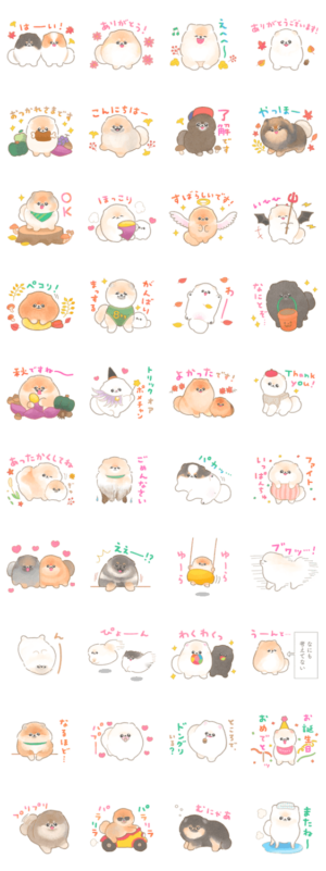 ポメラニアンのぽぽちとお友達の秋のスタンプです。敬語多めで使いやすいです。ぽこ より発売