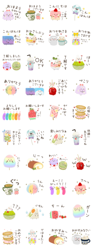 大人可愛いお菓子たちの日常で使えるスタンプです。mamako より発売