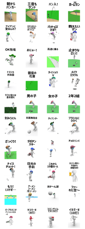 プレゼンやブログで見かける白いやつのダジャレゴルフ。若いゴルファーでは使えない死語ダジャレもあったりします。3dヒューマン,3Dホワイトマン,ピクトマン ※このスタンプはトークルームで大きく表示されるBIGスタンプです。G-flash より発売