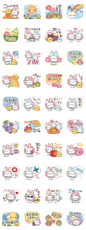 サクッと送れて便利な秋スタンプです。挨拶/食べ物/でか文字/動物/うさぎ/トリ/秋/毎日使えるアルク より発売