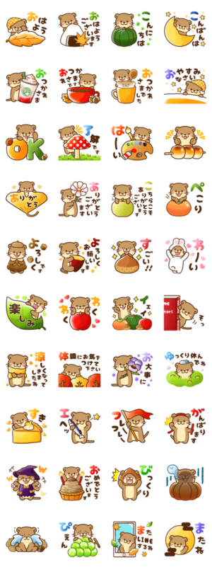 コツメカワウソ♡毎日つかえる秋 水彩ver スタンプ画像一覧