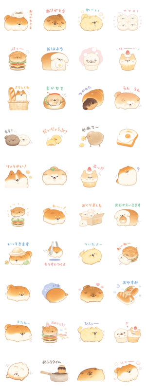 パンなのか、犬なのかわからない、不思議なわんこ「いーすとけん。」のスタンプが登場♪毎日使えるふんわり優しいイラストとメッセージがいっぱいです☆