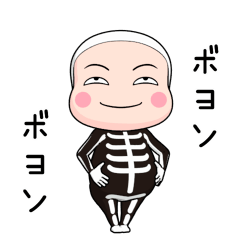 ハロウィンの時期にどうですか?大人かわいいガイコツの全身タイツちゃんのスタンプです。挨拶やお礼など日常よく使う言葉を集めました。家族や友達との連絡にどうぞ。