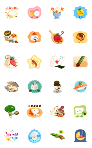 テーブルタウンで暮らしてる食べ物たちのスタンプです。「テーブルタウンズ」があなたの会話をお手伝いしてくれます。一色十秋 より発売
