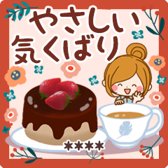 落ち着いた癒しカラーが大人かわいい♪相手を思いやる言葉がいっぱい入った便利な名前(カスタム)スタンプです★