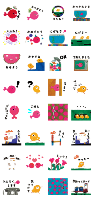 五味太郎の絵本『きんぎょがにげた』『ひよこはにげます』が、LINEスタンプになって登場!