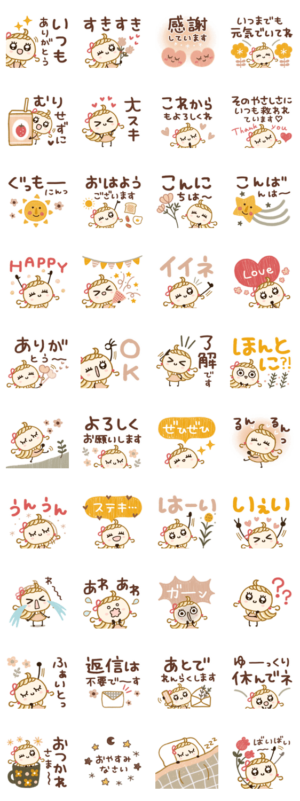 上品なほぺ代さんシリーズ♡相手に温かい気持ちが伝わる♡ほんわか優しいスタンプです。小さな幸せ/感謝あさごぱん より発売