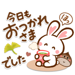 耳の模様がハートの形のうさぎさんの秋スタンプです。家族や友人に気軽に送れる言葉や、季節を問わず使えるものもたくさんありますので、ぜひご利用ください。