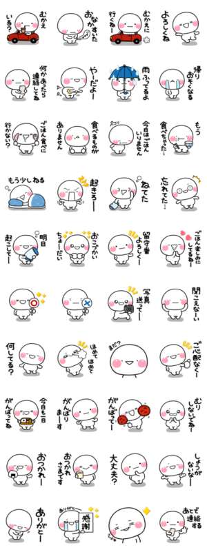 しろまるの家族で使える連絡用スタンプです。ずっと使える内容を揃えましたのでスタンプ初心者の方にもオススメです。【作:いしいともこ】
