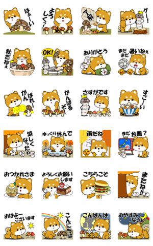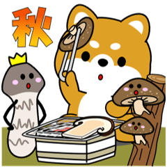 秋の日常に使いやすい豆柴とキノコの飛び出すスタンプです。ヒサケイプリン より発売
