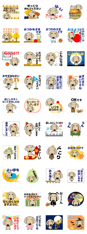 心優しい・癒しのダックスフンド・犬 秋編 スタンプ画像一覧