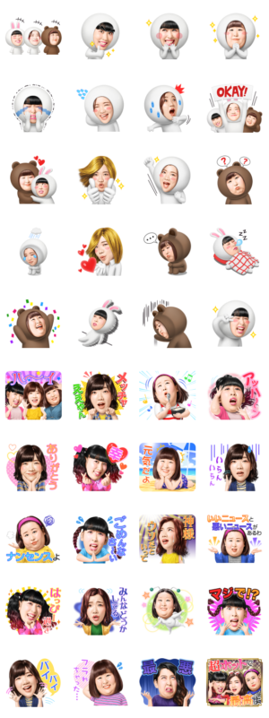 BROWN & FRIENDSの初期デフォルトスタンプにインスパイアされた特別デザインからおなじみ人気ネタのキャラまで、3時のヒロインの魅力がたっぷり詰まった40個!吉本興業株式会社 より発売