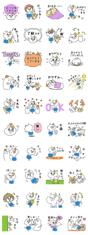 ネコ子の毎日使える秋スタンプ。かわいいゴーストたちもいるよ!OTOBOOK より発売