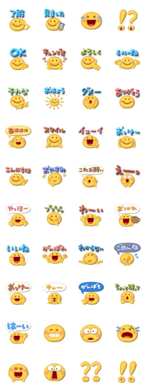 ぷっくり可愛い3Dスマイルと3D文字。毎日使える日常会話です。takopon より発売