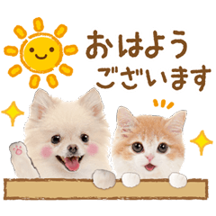 かわいい犬、かわいい猫シリーズ がコラボした 飛び出す よく使うスタンプです