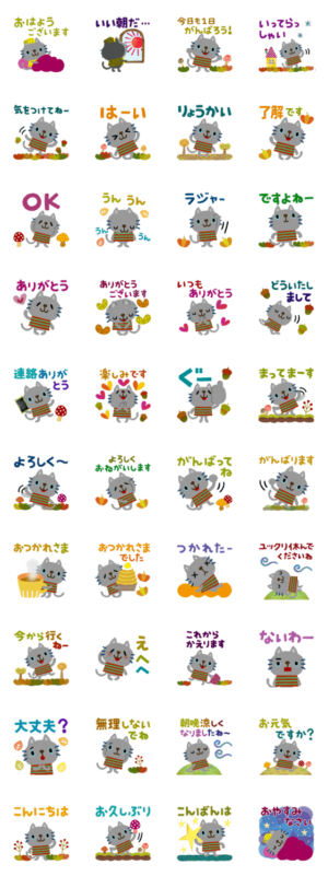 ありがとう、おつかれさま、よろしくなど、使いやすい言葉がいっぱいです。