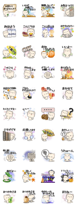ほのぼのとらにゃんの優しい秋のスタンプができました。ぽてこ より発売