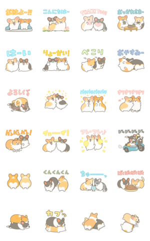友達といつも一緒にいるコーギーの動くスタンプです。仲良く楽しい日常生活にコギの成分が欲しくなったらお使いください。