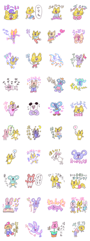 猫やウサギやネズミなどのちょっとシュールでレトロ不細工かわいいスタンプです。