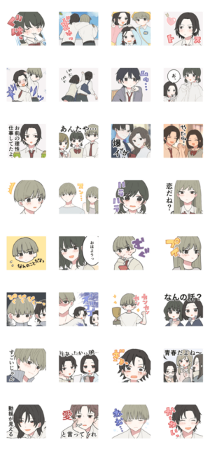 「無口くんとみなみちゃん」の漫画のコマで作ったスタンプです!!nagimugi より発売