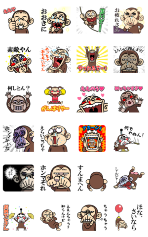 画面いっぱいに飛び出すお猿さんの関西弁スタンプが登場♪ ※過去にリリースされたスタンプから厳選した関西弁版リメイクです。