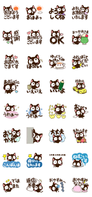 『小さい黒猫』の毎日使える、くろねこ日常スタンプ。便利なクロネコスタンプ。絵文字と着せかえもあります。【かたこ】かわいい・楽しい・ちいさい・まるい・可愛い・かたこ より発売